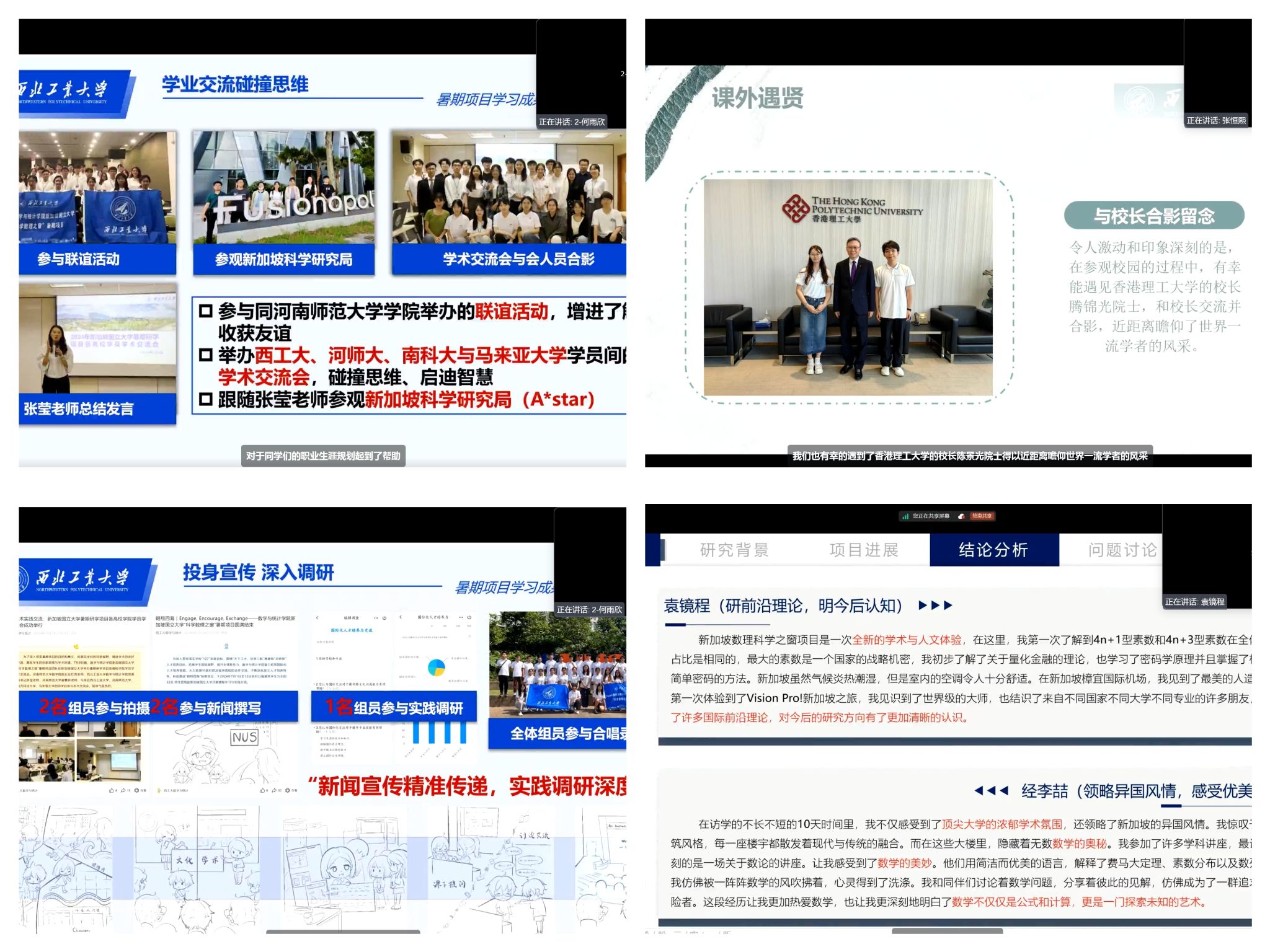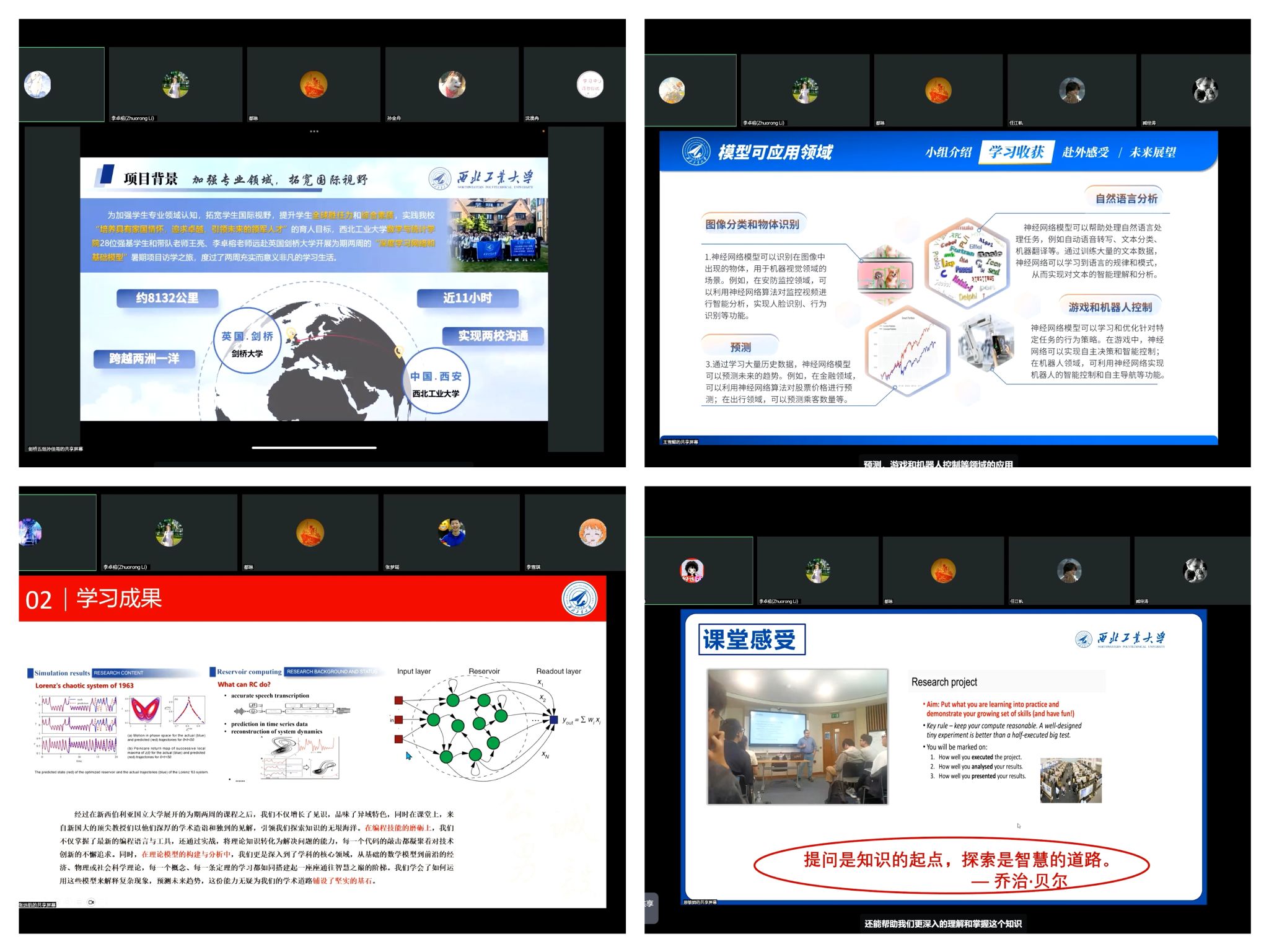 前言:为培养具有国际视野的数学拔尖人才,日本av无码 在国际合作处、教务部等相关部门的鼎力支持下,携手国际一流学府,于2024年暑期精心打造了一系列国际交流项目,共计派出全校学生167人次。其中,25名2022级数学强基学生走进英国剑桥大学开展为期两周的“深度学习和神经网络模型”暑期项目;30名2021级数学强基学生走进新加坡国立大学,开启“科学数理之窗”奇妙旅程;62名本硕博学生走进香港理工大学及俄罗斯新西伯利亚国立大学,倾听教授们的智慧之声,感受学术的前沿动态,沉浸于知识的盛宴。宝贵的研学经历不仅促进了同学们拓宽知识广度、拓展全球视野,也帮助他们树立更高理想、涵养博大胸怀,不断探索创新、追求卓越,为推动高水平科技自立自强、实现中华民族伟大复兴贡献工大青年的智慧和力量!
