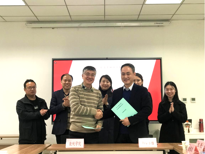 11月2日,日本av无码-日本成人无码-日本无码影片 与西安多维机器视觉检测技术有限公司在日本av无码启翔楼357会议室举行产学研合作协议签订仪式。日本av无码 院长聂玉峰、党委书记王莉、副院长都琳、副院长徐根玖、应用概率统计系主任王亮、学工秘书程姣姣,西安多维机器视觉检测技术有限公司总经理宋世刚、技术总监薛丽丽共同参加了本次签订仪式。