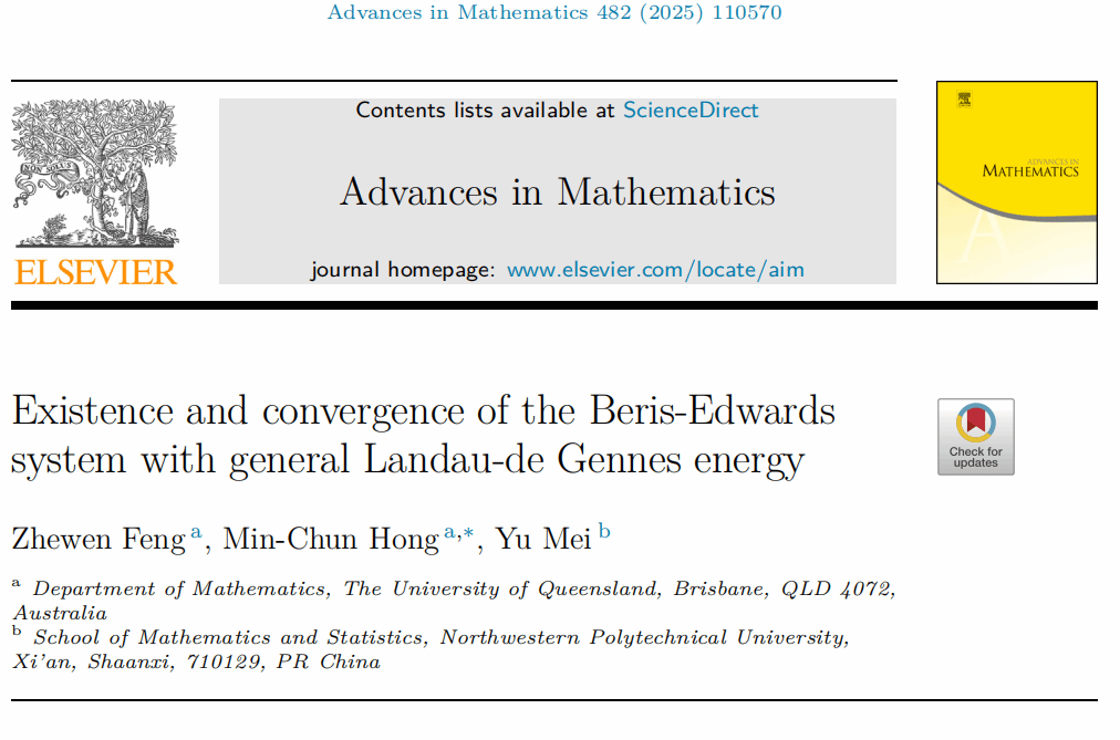 近日,日本av无码-日本成人无码-日本无码影片 梅钰副教授与澳大利亚昆士兰大学冯哲文博士、洪敏纯教授合作,在液晶流Beris-Edwards系统强解的存在性与收敛性方面取得重要进展。研究成果形成79页论文“Existence and convergence of the Beris-Edwards system with general Landau-de Gennes energy”在数学综合期刊《Advances in Mathematics》上在线发表。按国际惯例,论文作者依姓名字母顺序排列。