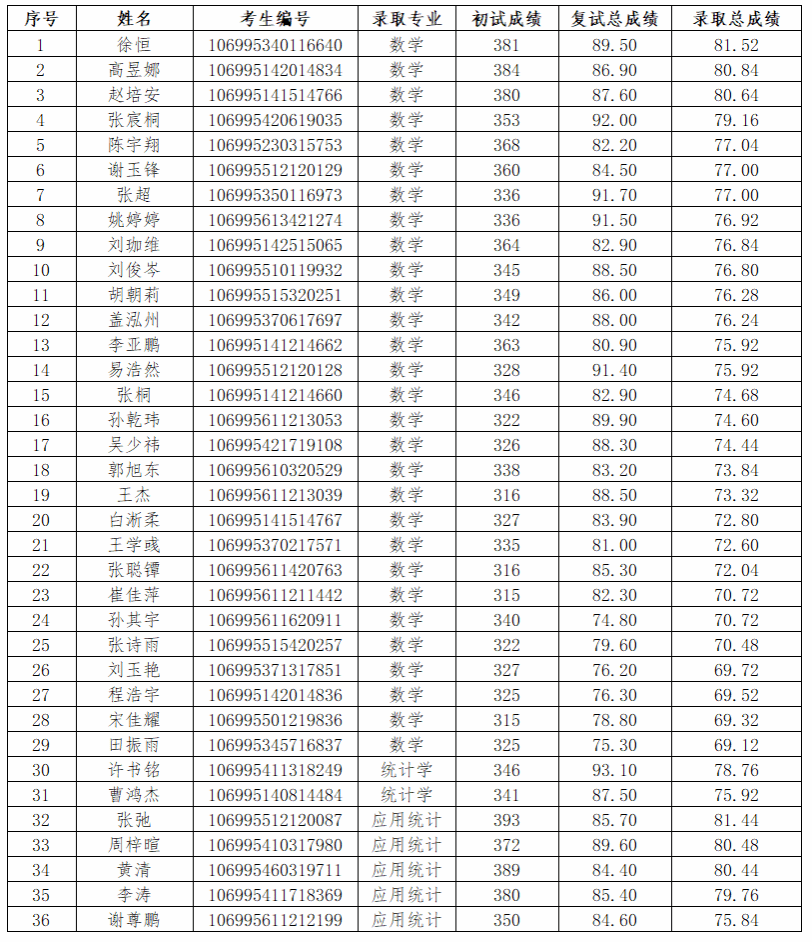 现将我院2025年硕士研究生招生考试拟录取名单公示如下: