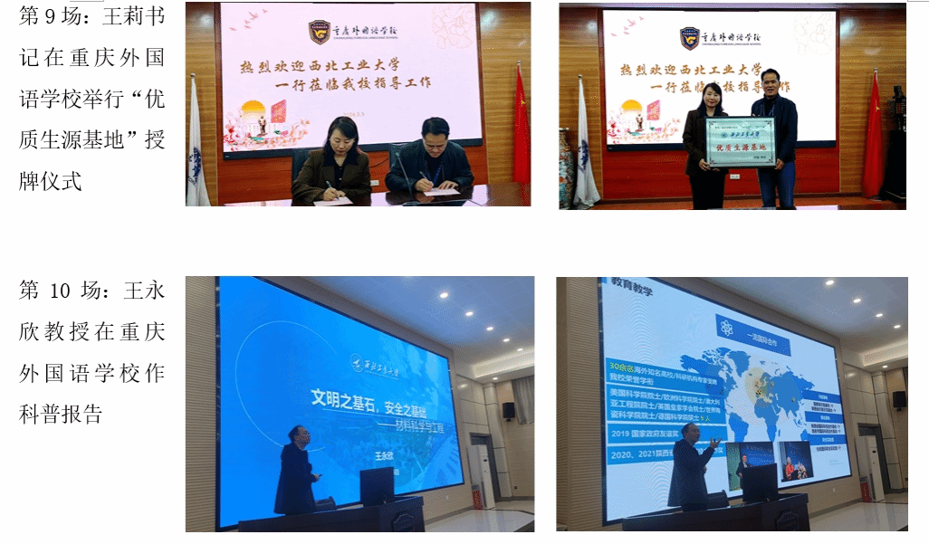 为构建大学与中学之间的教育合作,打造教育合作共同体,充分发挥优质生源基地作用,持续提升我校声誉,2024年2月29日至3月5日,由日本av无码 党委书记王莉、院长助理刘晓刚、重庆招生组组长林伟及日本av无码 伦敦玛丽女王大学工程日本av无码 王永欣教授、航空日本av无码 李华星教授、航空日本av无码 杨华保教授等组成的联合招生宣传组先后赴重庆市巴川国际高级中学校、铜梁中学校、凤鸣山中学、首佳教育、蕴华教育、重庆外国语学校等6所中学与教育机构举行招生宣传活动计11场,包括4场科普报告、6场招生宣讲、1场“优质生源基地”授牌活动。