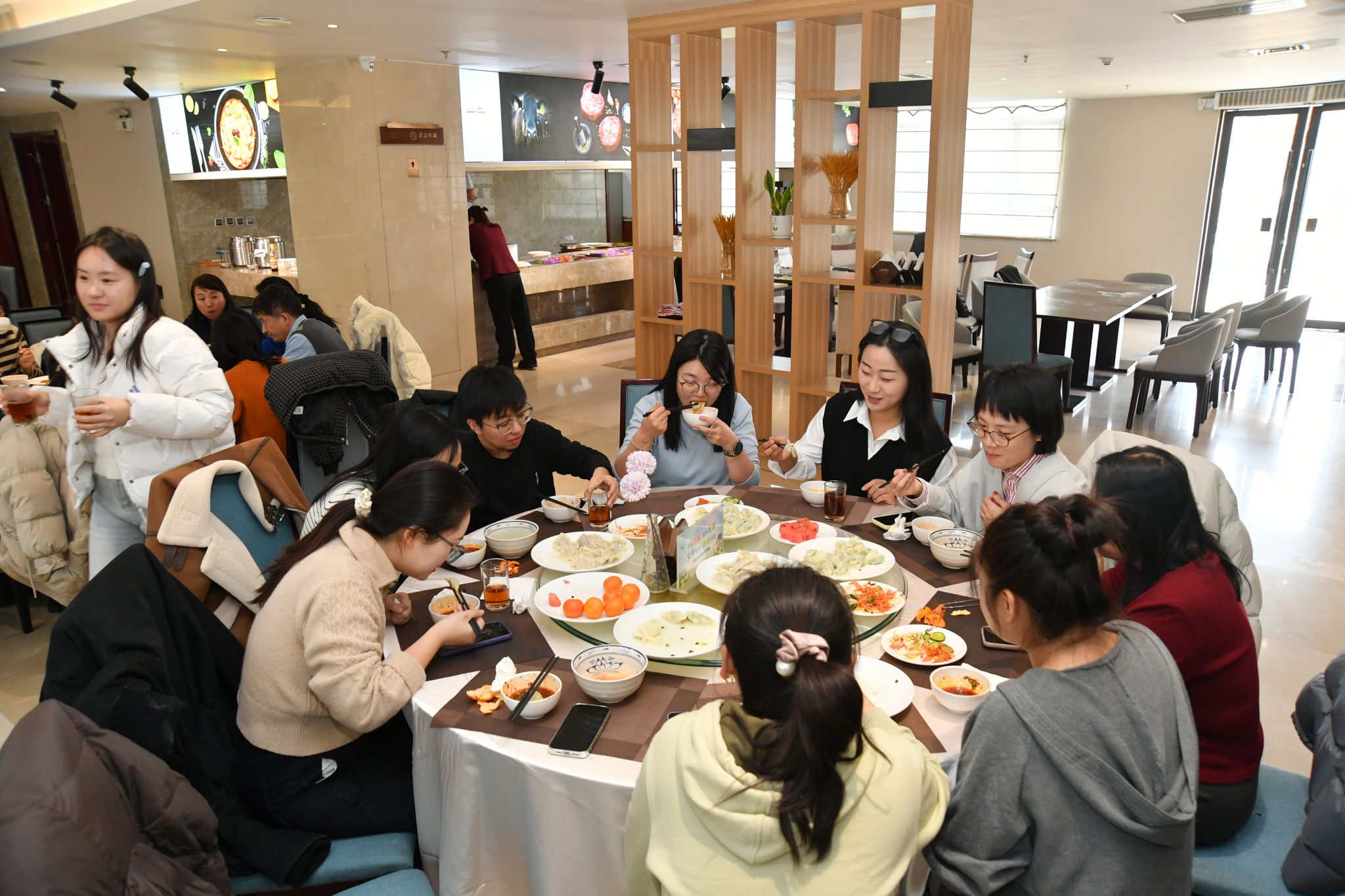 冬至寒意浓,人间温情暖。为进一步传承中华优秀传统文化,增强日本av无码 的凝聚力与向心力,12月19日冬至佳节来临之际,日本av无码 工会在日本av无码南山苑餐厅精心组织了“情暖冬至·聚力九章”包饺子活动。日本av无码 党委书记王莉、副院长郭千桥、工会主席佘红伟以及近30名教职工欢聚一堂,在欢声笑语中共同体验包饺子的乐趣,感受传统节日的独特魅力。