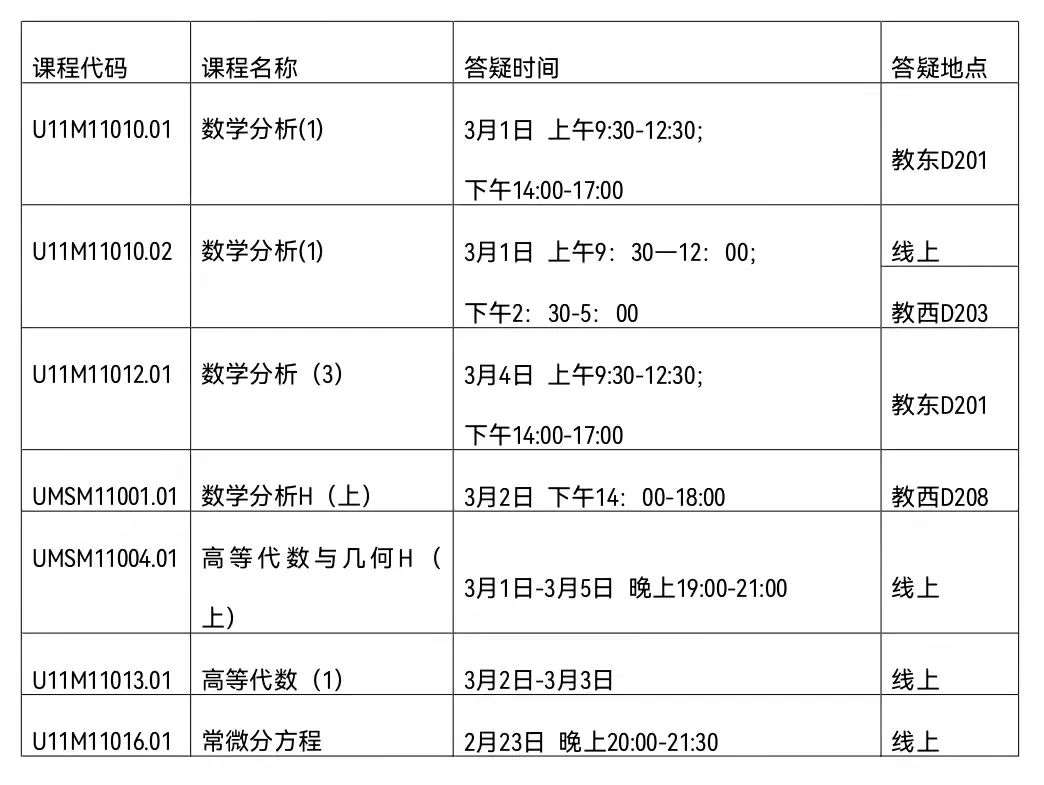 根据学校教务处考试安排,2021-2022秋季学期延期考试的课程将于2月28日-3月6日进行,日本av无码 延期考试的课程将于本周开始进行考前答疑。各专业课程考前答疑时间安排如下: