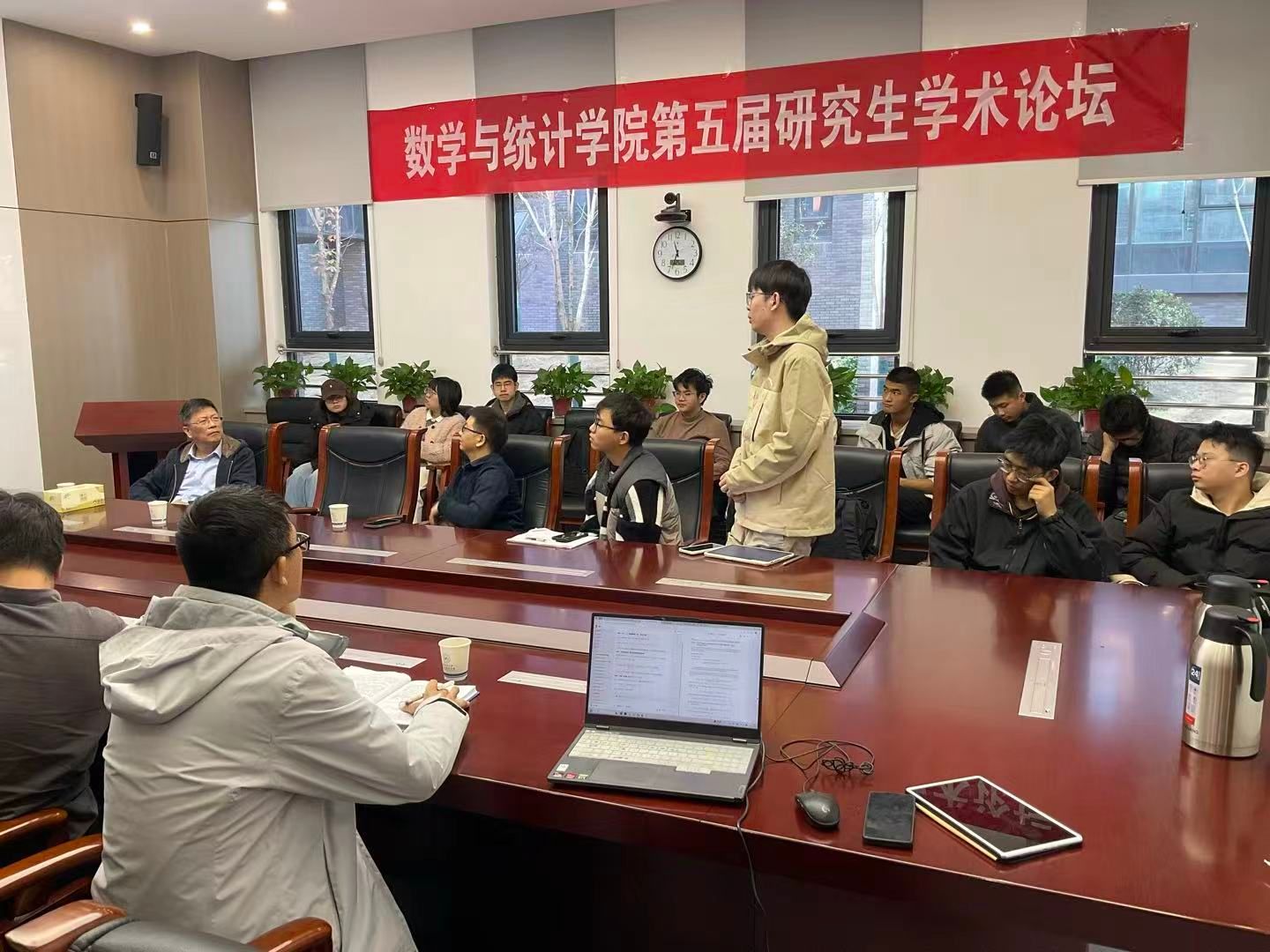 报告结束后,现场师生与凌晨教授就数据条状缺失问题、正则项的适配性问题、正交矩阵的选择问题展开热烈讨论。凌晨教授耐心细致地解答了每一个问题,并分享了他在算法设计和实验处理中的宝贵经验和独到见解。本次报告会的成功举办,为与会师生提供了一个深入了解张量优化前沿动态、交流学术思想的宝贵机会,进一步加强了我校师生与同行专家的学术联系与合作。(图、文:孙启轩、白建超/审核:都琳)