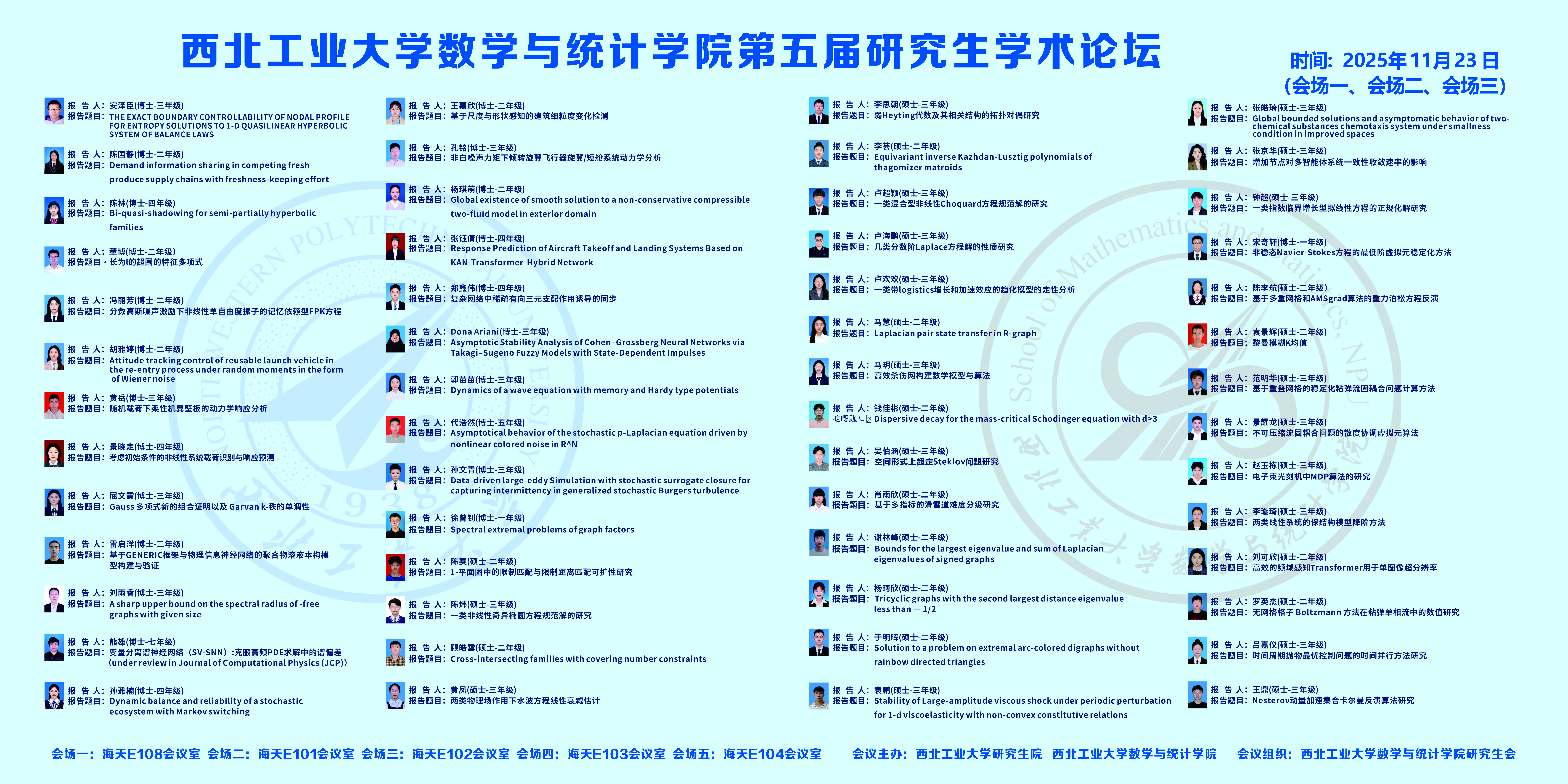 为了进一步落实数学学科“双一流”建设,营造研究生学术创新氛围,展示研究生学术创新成果,提高研究生培养质量,日本av无码 第五届研究生学术论坛将于2025年11月23日在日本av无码 日本av无码举办。本次论坛旨在为研究生提供一个高水平的学术交流平台,促进研究生之间的学术交流和思想碰撞,培养创新意识,营造良好的学术氛围,达到开阔视野、启迪智慧,提高创新能力的目的。