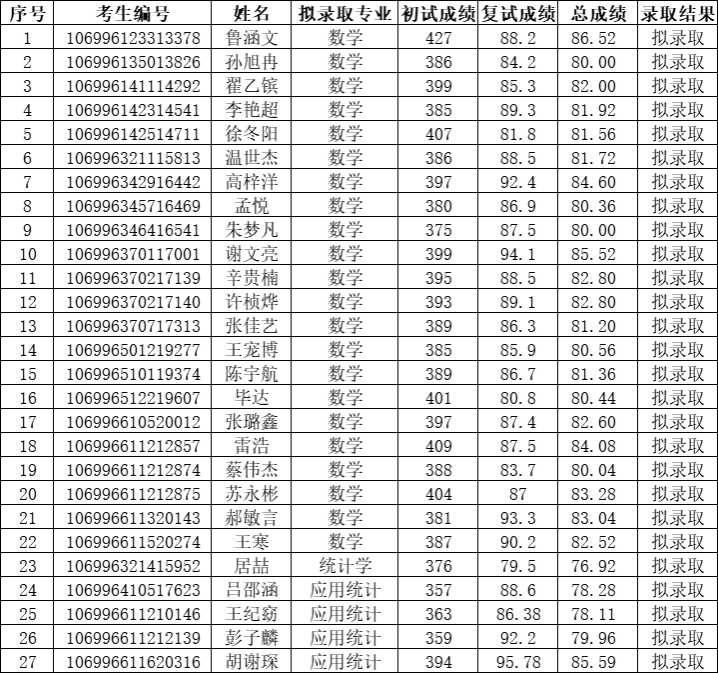 现将我院2026年硕士研究生招生考试拟录取名单公示如下: