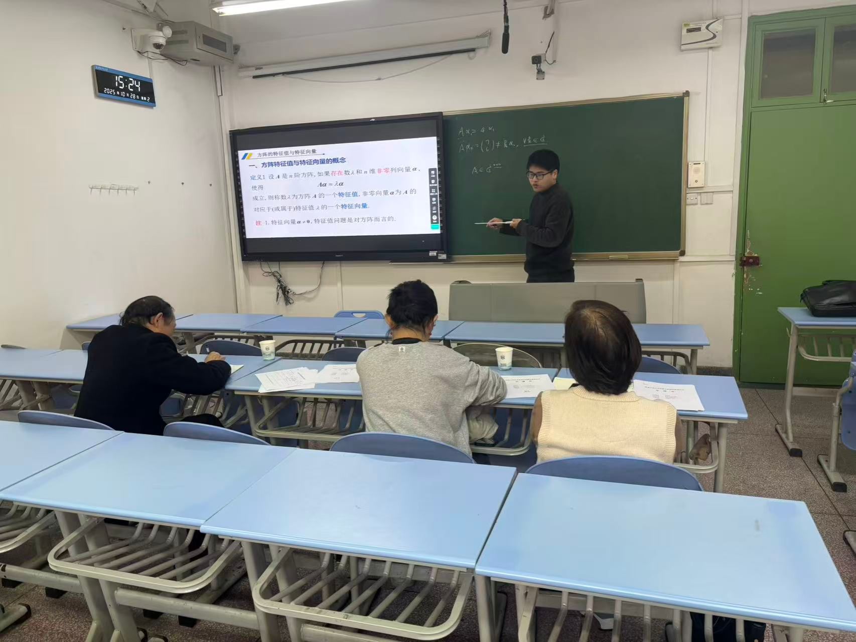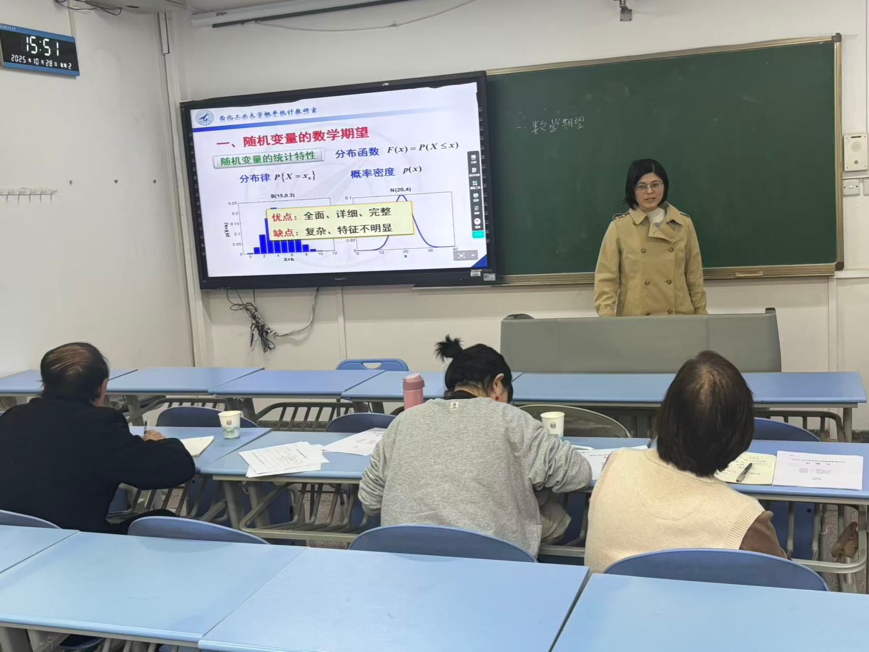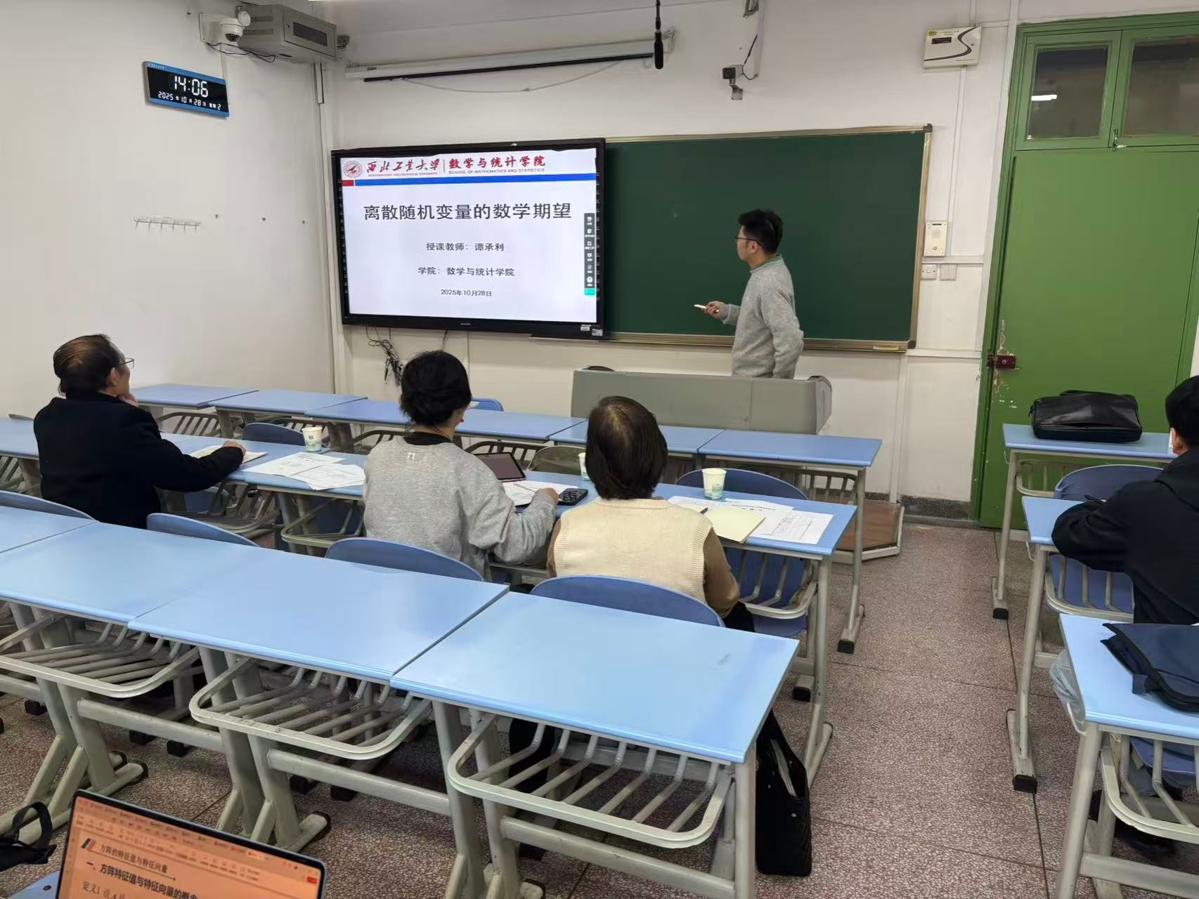 根据试讲安排,各位青年教师从所承担或拟承担的课程中选取主要内容,以PPT与板书为主要教学手段,在限定时间内完整呈现了一个知识点的授课过程。