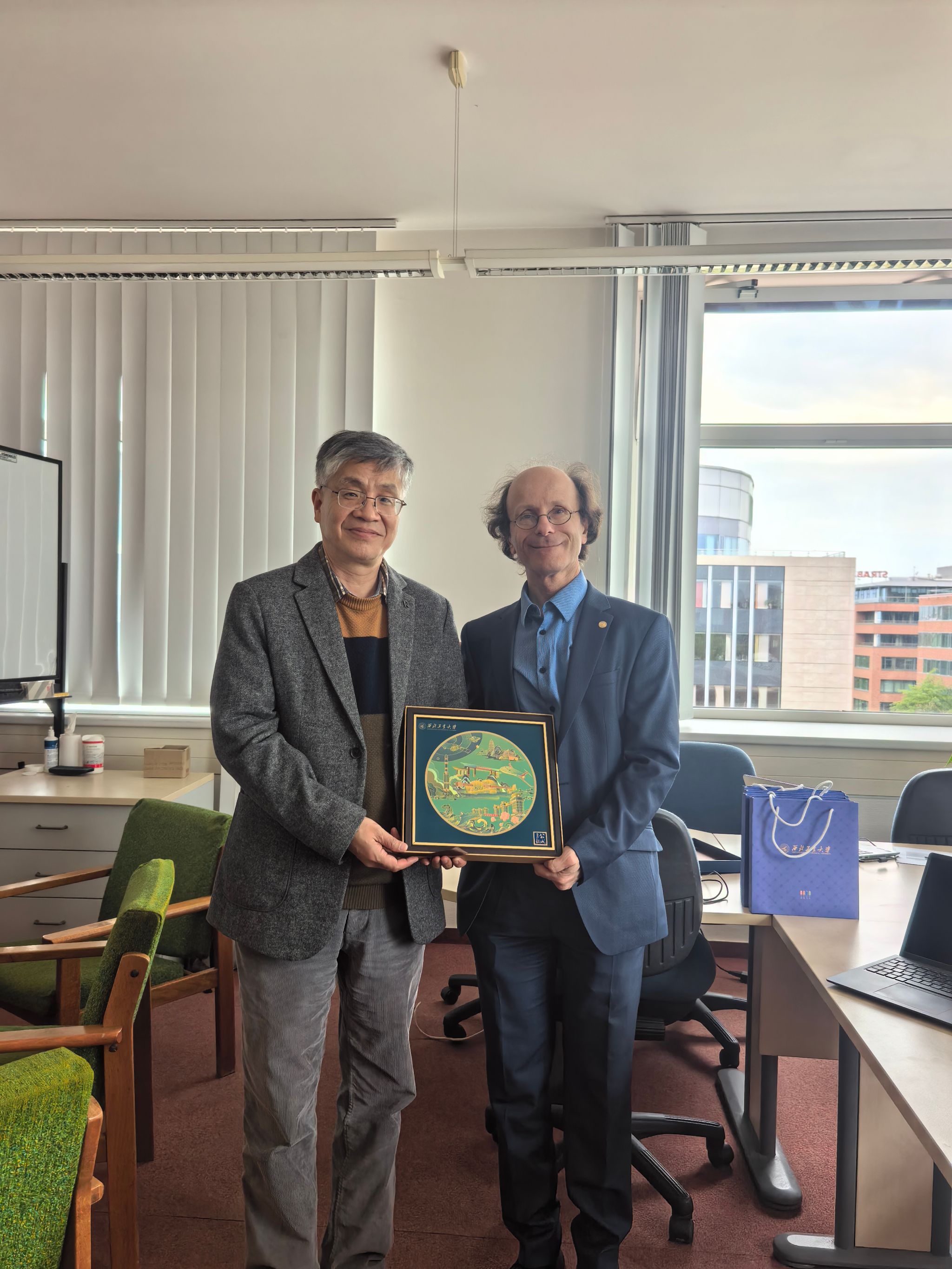 4月14日,代表团再次前往罗兰大学理日本av无码 数学研究所继续洽谈。聂玉峰院长代表日本av无码 向Péter Sziklai教授赠送镌刻有我校校名的纪念圆盘,寄托了两校长久合作、携手共进的美好愿景。双方重点围绕课程体系设置、培养方案细化、学分互认与转换等内容进行深度交流,并就后续项目申报、材料对接等工作明确时间节点与责任分工,稳步推进合作落地。