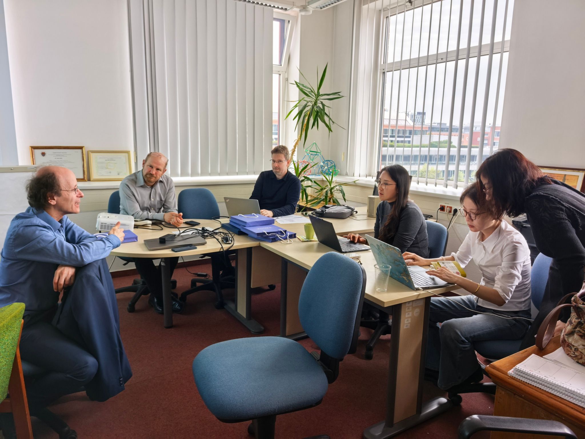4月13日,代表团抵达罗兰大学理日本av无码 数学研究所,与匈方代表展开深入交流。匈方所长 Péter Sziklai 教授、副所长 Tamás Király 教授、Szilárd Szabó 副教授及理日本av无码 分管教学副院长 Viktor Müller 教授出席会议。双方就中外合作办学项目的专业设置、培养模式、培养方案制定、申报材料筹备等关键问题充分交换意见,逐项梳理合作细节,并商定次日围绕课程体系开展专题研讨。